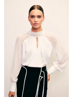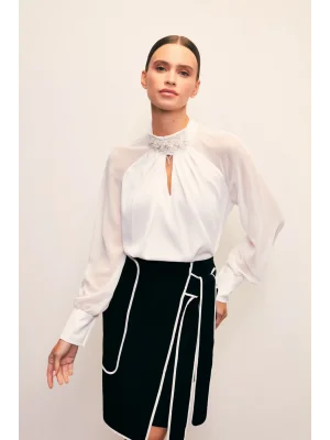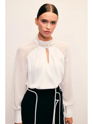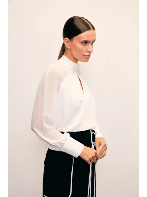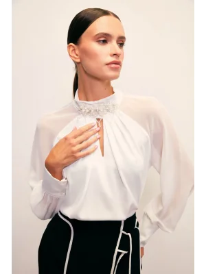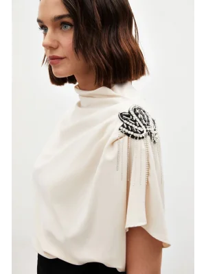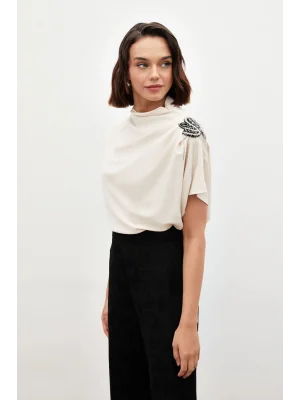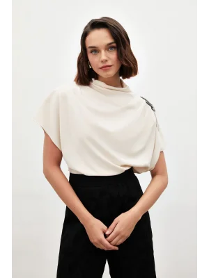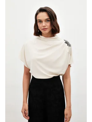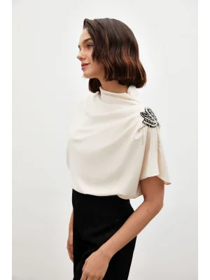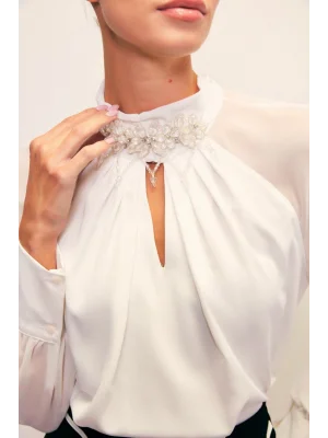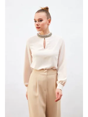 Yaka Aksesuarlı Bluz - Ekru