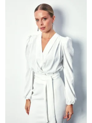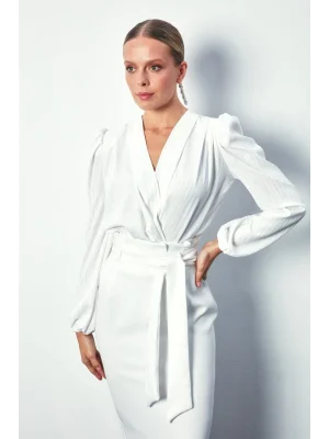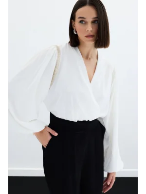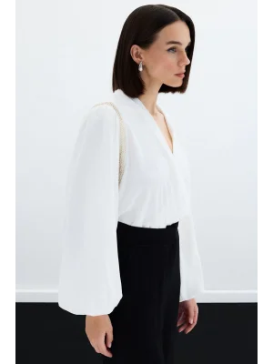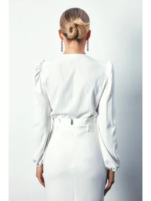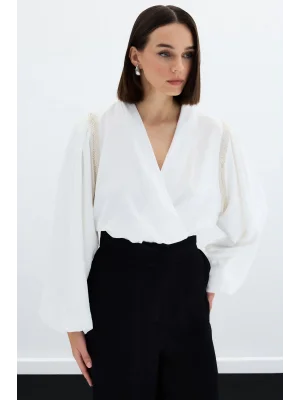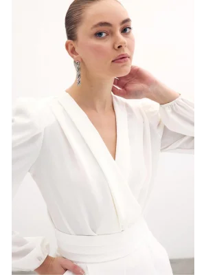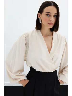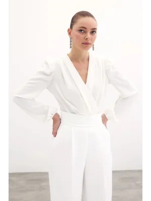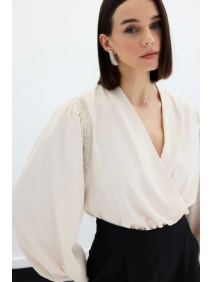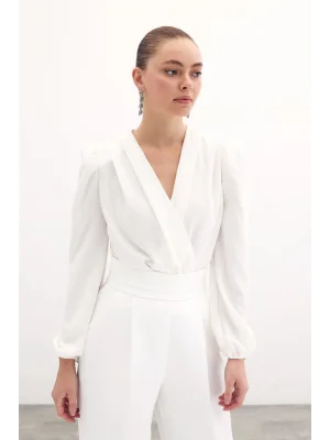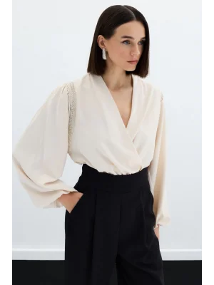Kruvaze Vatkalı Bodysuit - Ekru