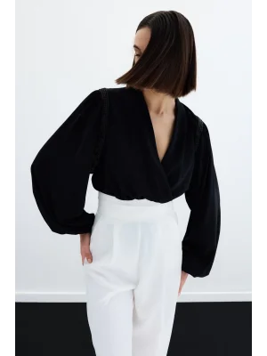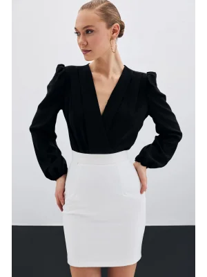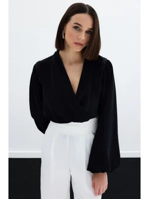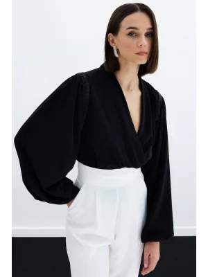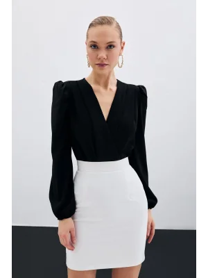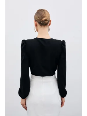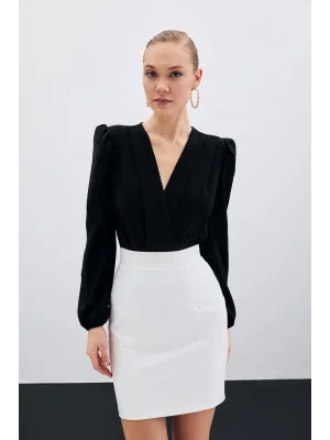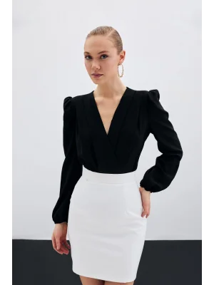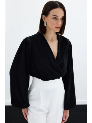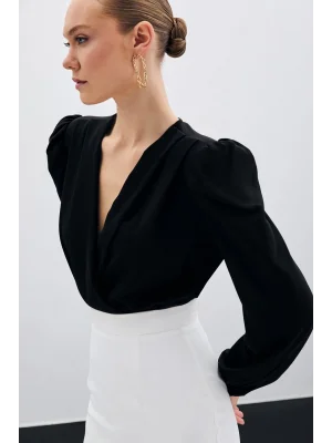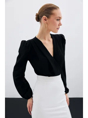 Kruvaze Vatkalı Bodysuit - Siyah