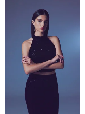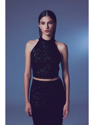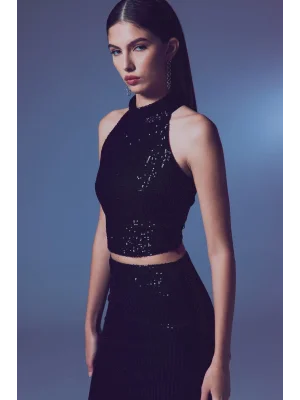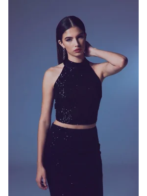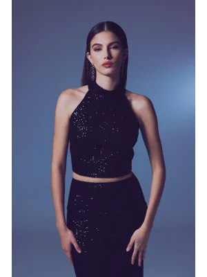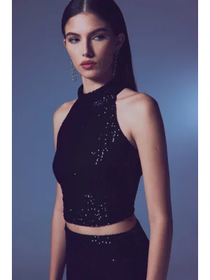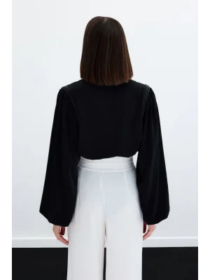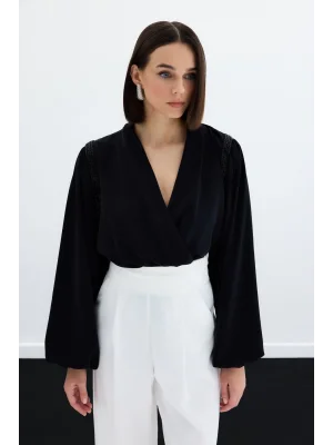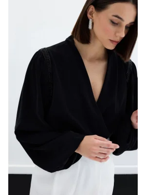 Kolsuz Payetli Bluz - SİYAH