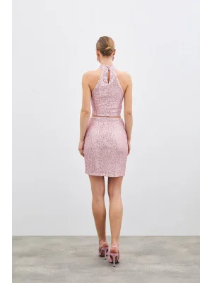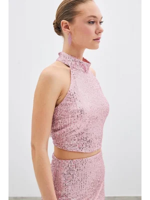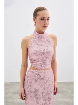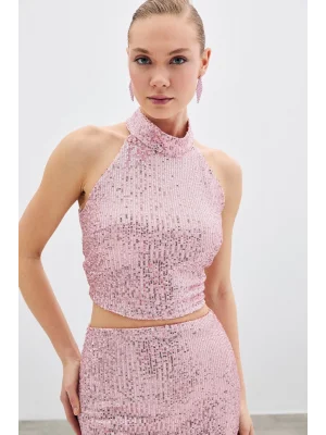 Kolsuz Payetli Bluz - Pudra