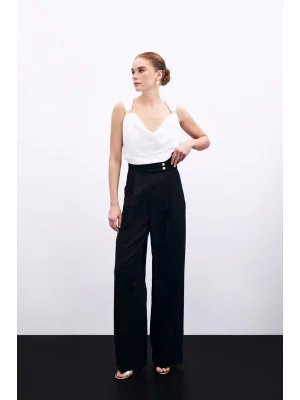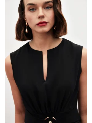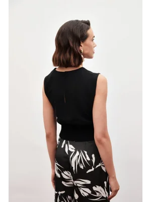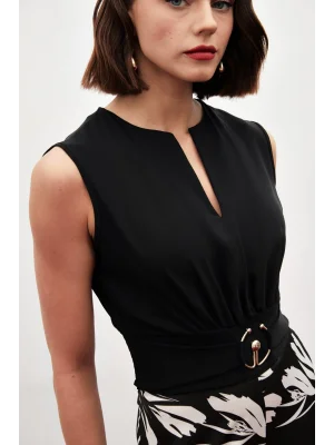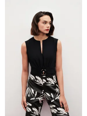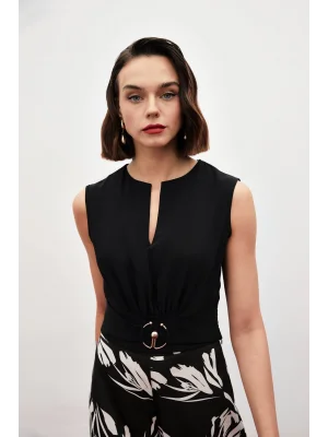 Toka Detaylı Kolsuz Bluz - SİYAH