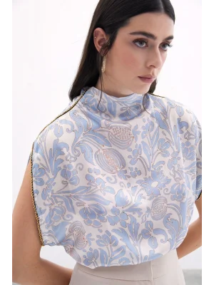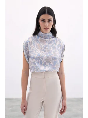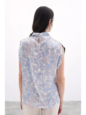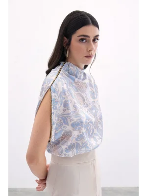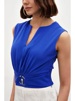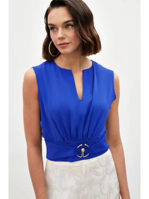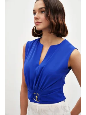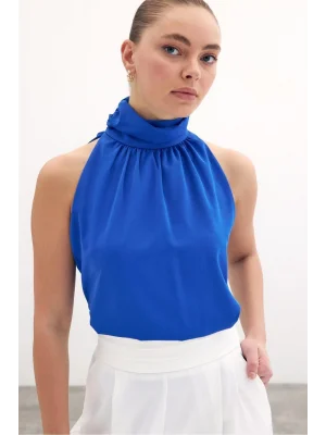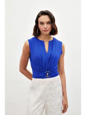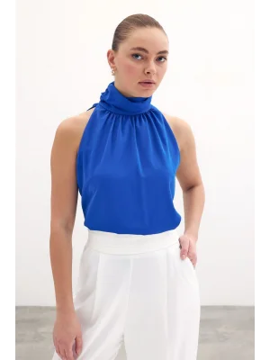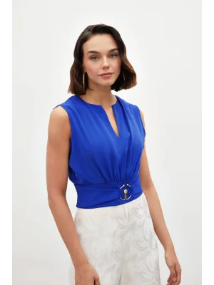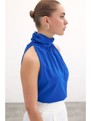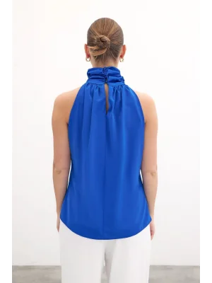 Toka Detaylı Kolsuz Bluz - SAX MAVİ