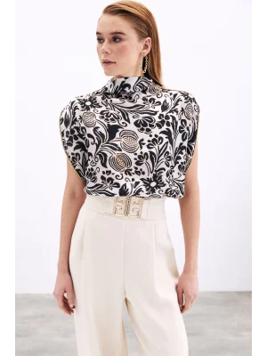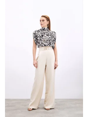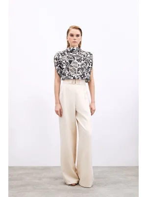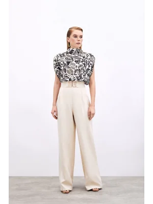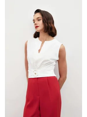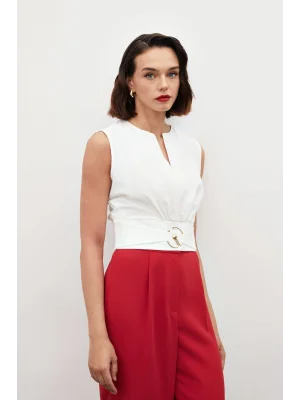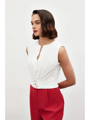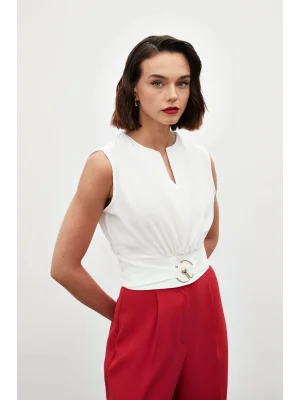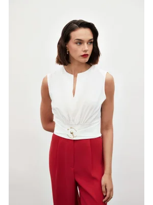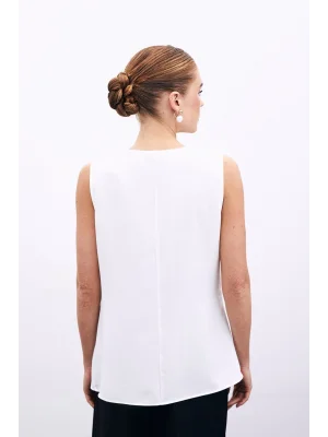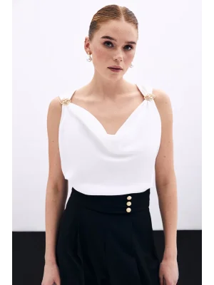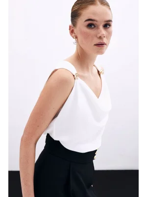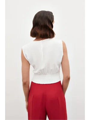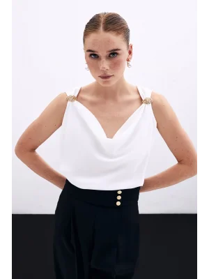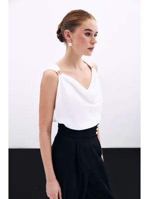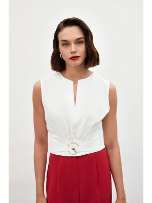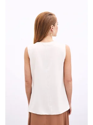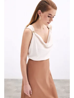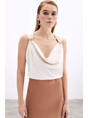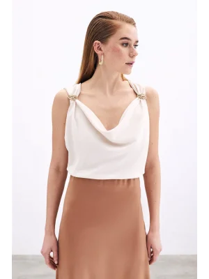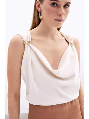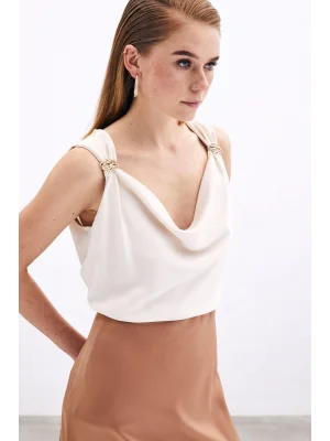 Toka Detaylı Kolsuz Bluz - EKRU