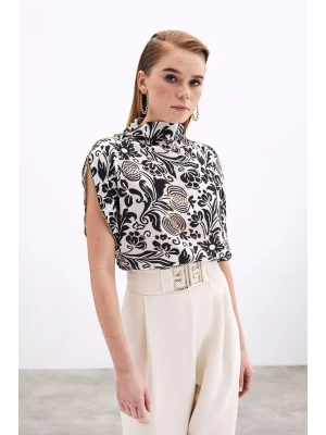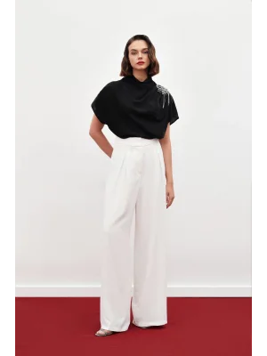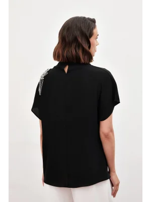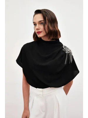 Aksesuarlı Yarasa Kol Bluz - Siyah