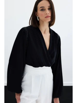 Aksesuar Detaylı Bodysuit Bluz - SİYAH
