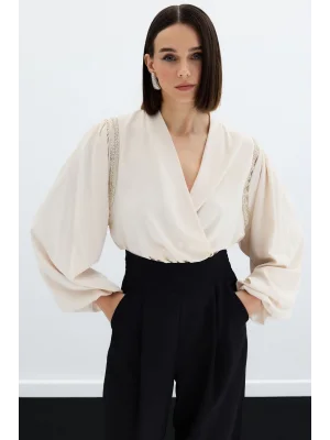 Aksesuar Detaylı Bodysuit Bluz - Bej