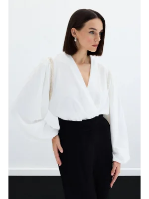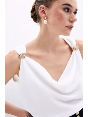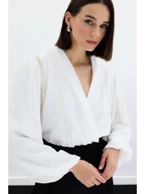 Aksesuar Detaylı Bodysuit Bluz - Ekru