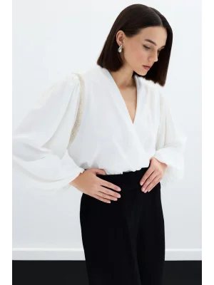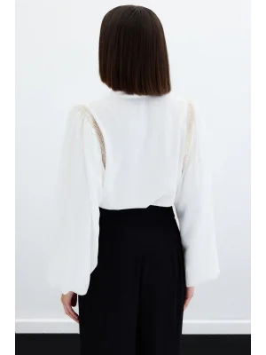 Degaje Yaka Bluz - Ekru