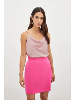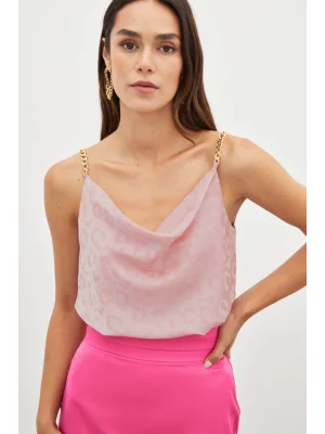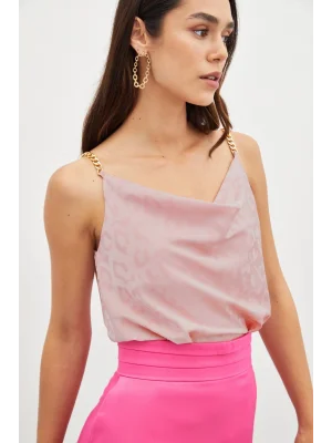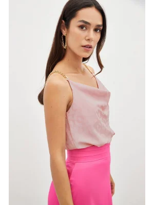 Zincir Askılı Saten Bluz - Pembe