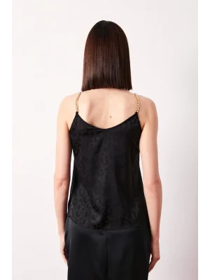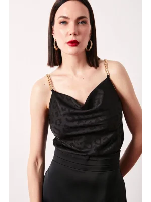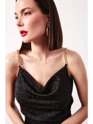 Zincir Askılı Saten Bluz - SİYAH