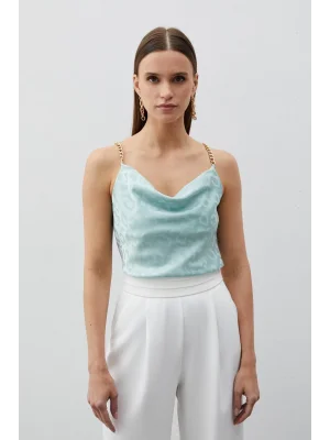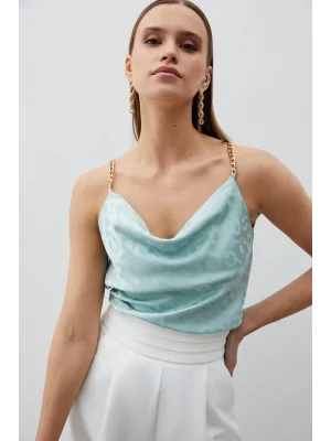Zincir Askılı Saten Bluz - MİNT