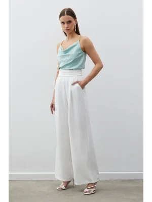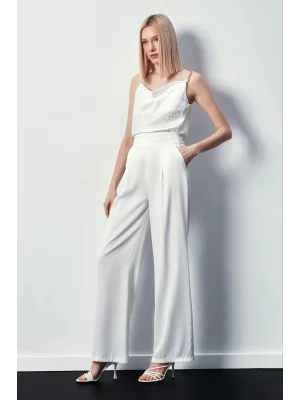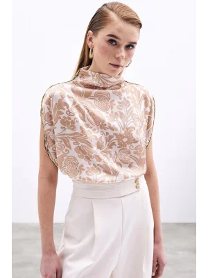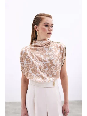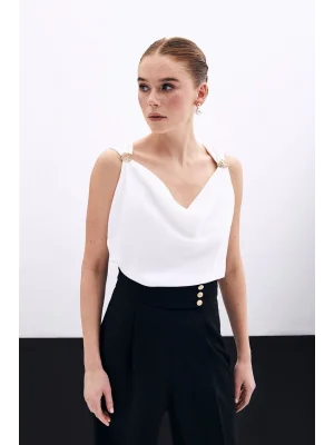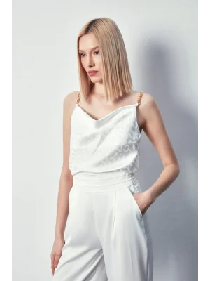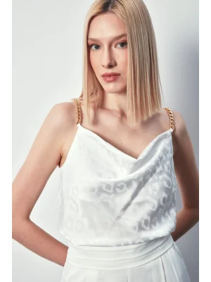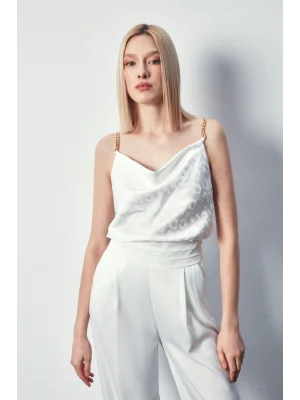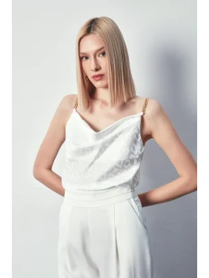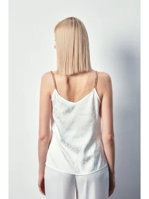Zincir Askılı Saten Bluz - Ekru