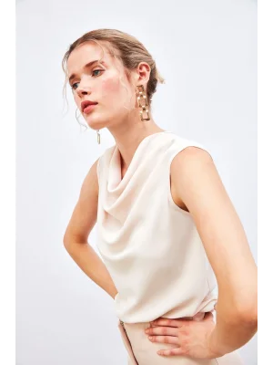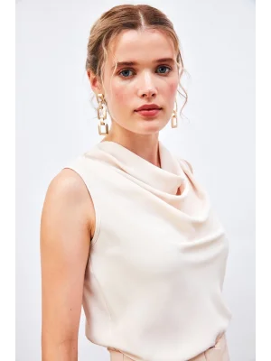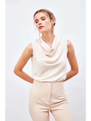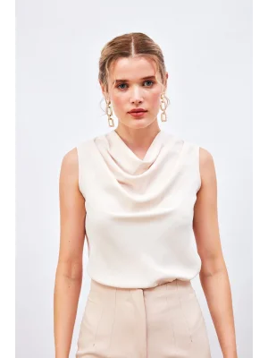 Degaje Yaka Kolsuz Bluz - Ekru