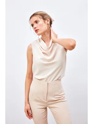 Degaje Yaka Kolsuz Bluz - Bej