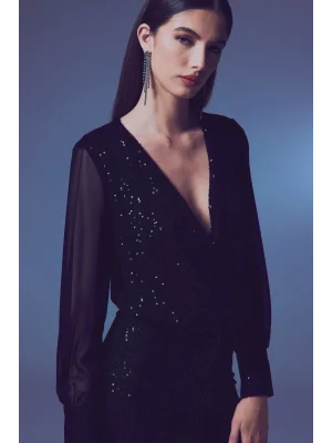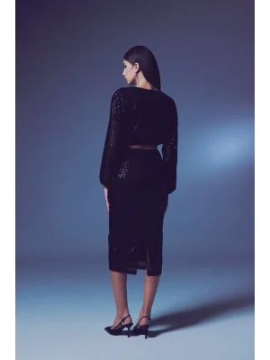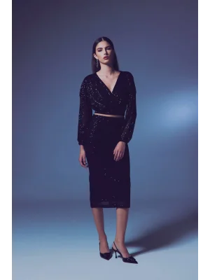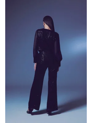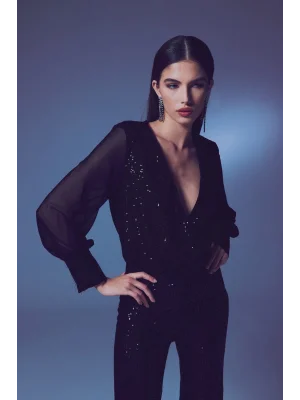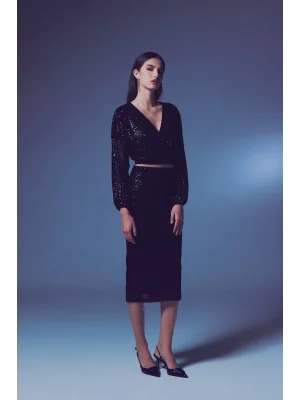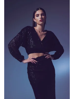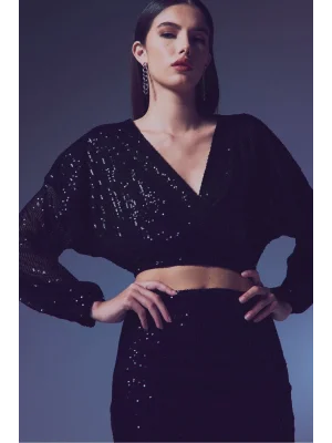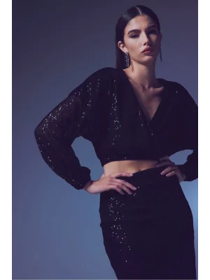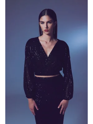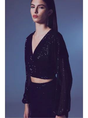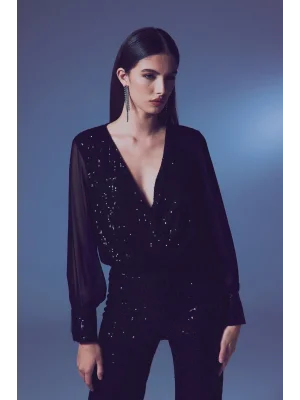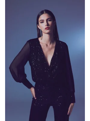 Payetli Kruvaze Bluz - SİYAH
