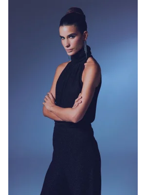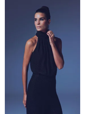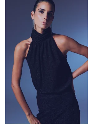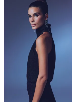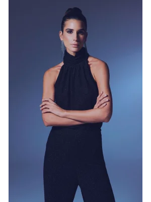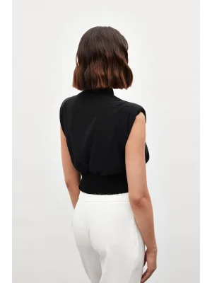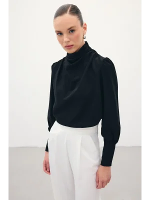 Kolsuz Parlak Bluz - SİYAH