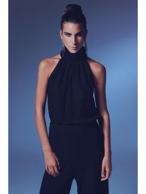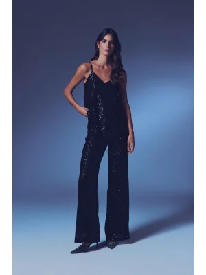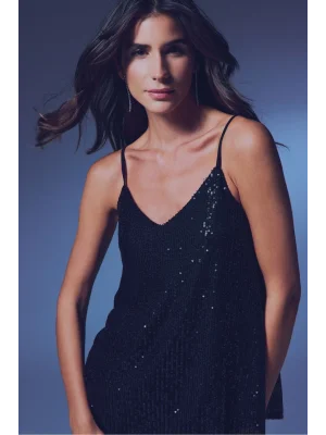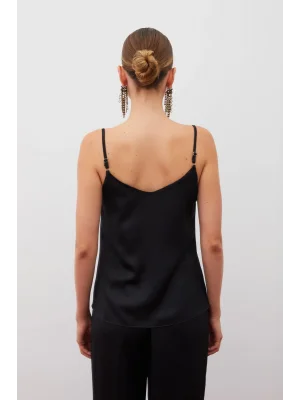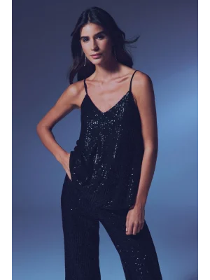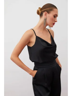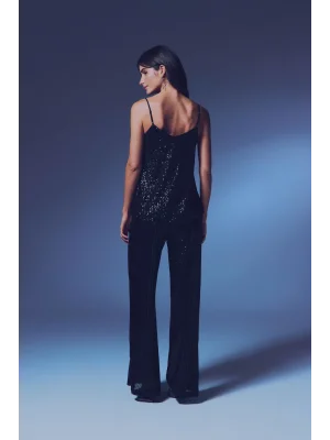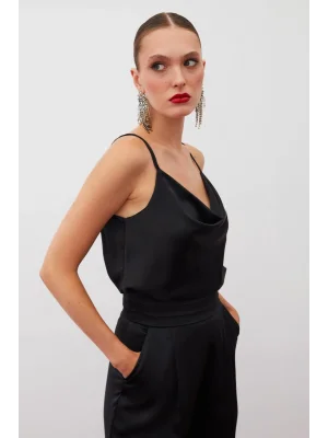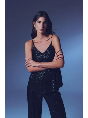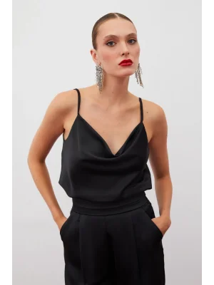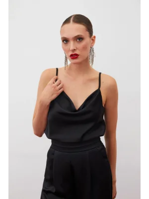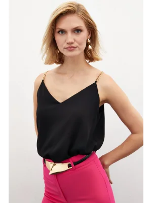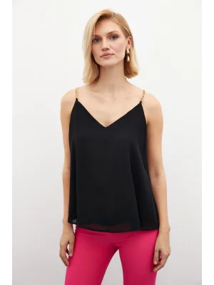 Payet Detaylı Askılı Bluz - SİYAH