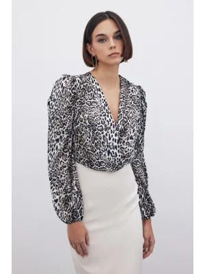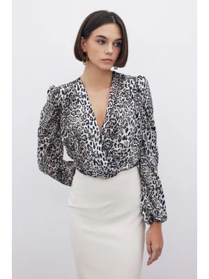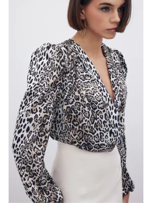 Leopar Desenli Bodysuit - SİYAH