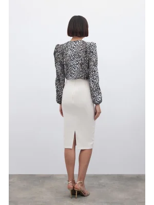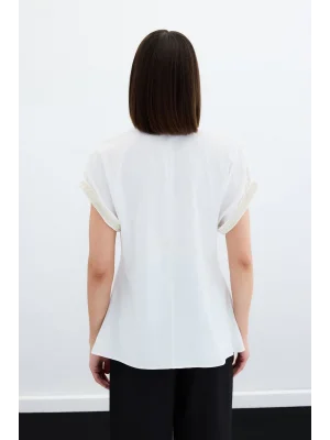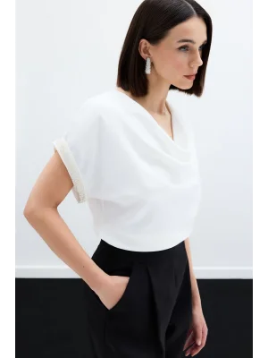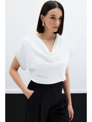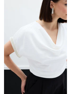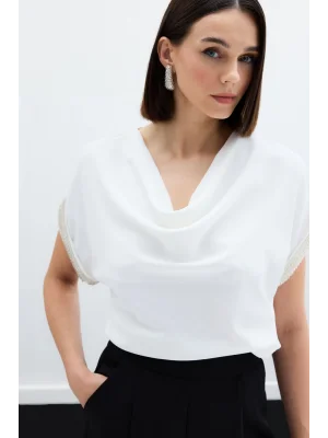 Kollar Taş Detaylı Salaş Bluz - Ekru