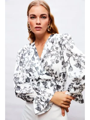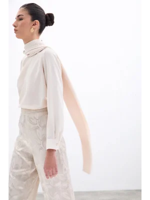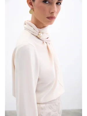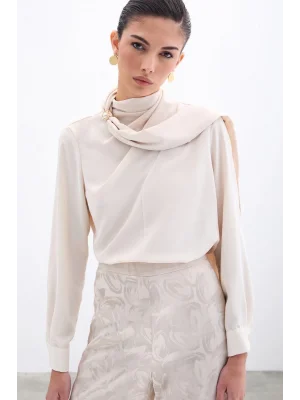 Şal Detaylı Bluz - Bej