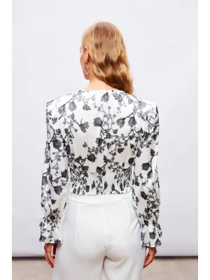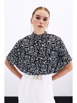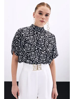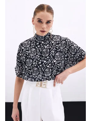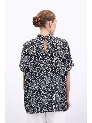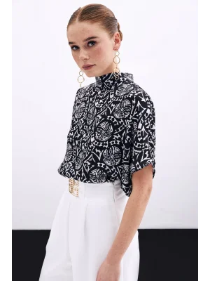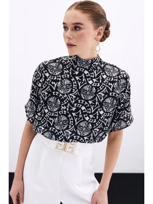 Kısa Kol Desenli Bluz - Siyah
