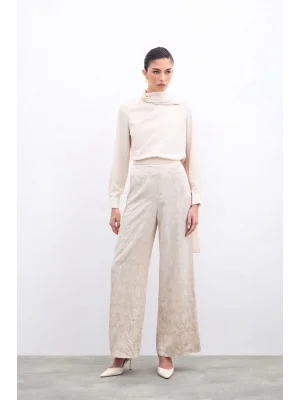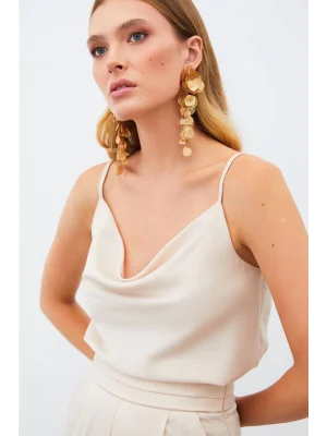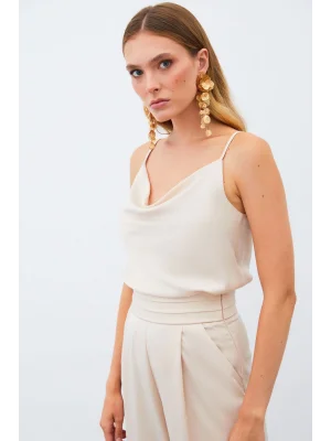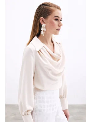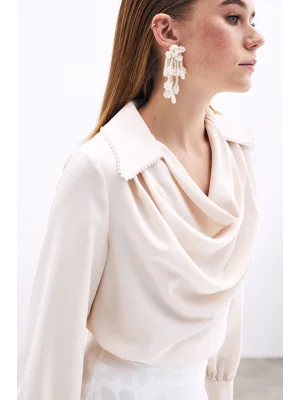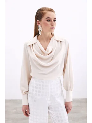 Degaje Yaka Incili Salaş Bluz - Bej