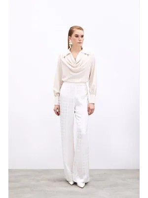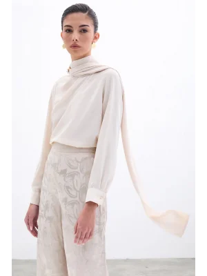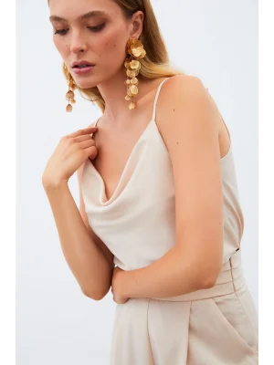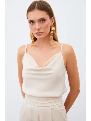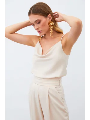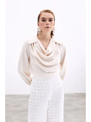 Degaje Yaka Saten Bluz - BEJ