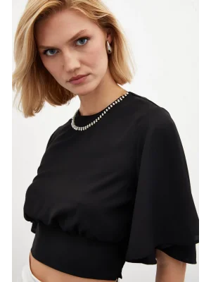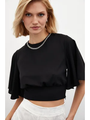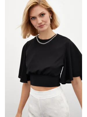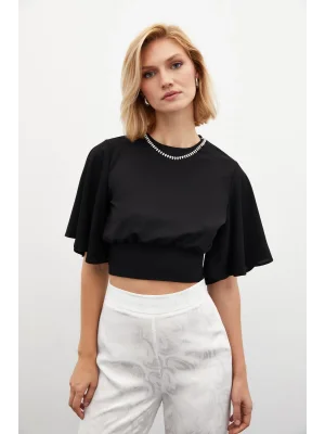 Kolyeli Kısa Kol Bluz - SİYAH