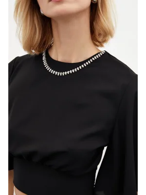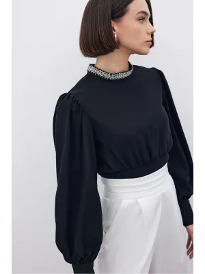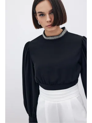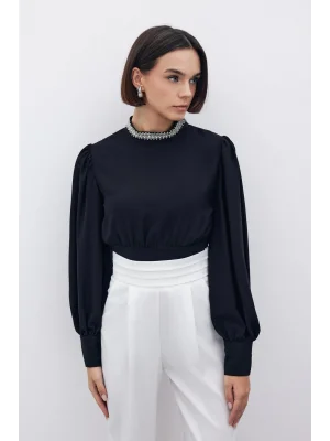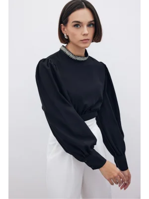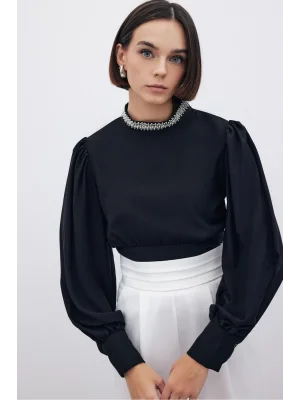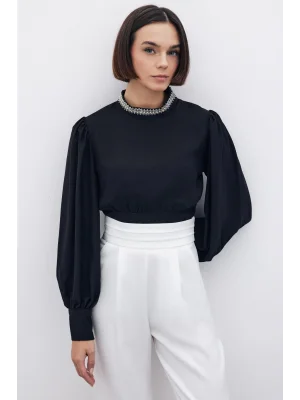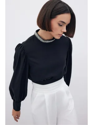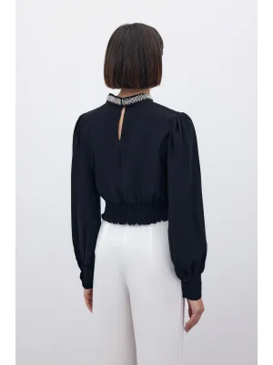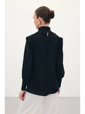 Yaka Aksesuarlı Bluz - SİYAH