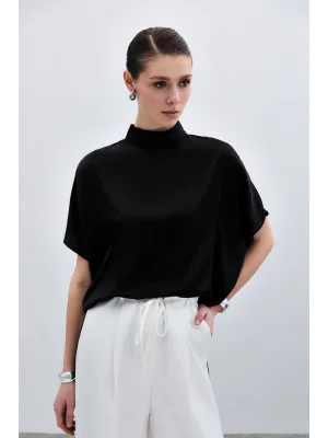 Yarasa Kol Salaş Bluz - Düz Siyah
