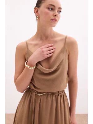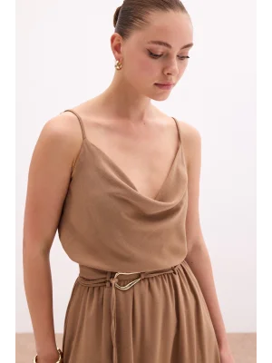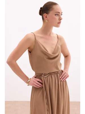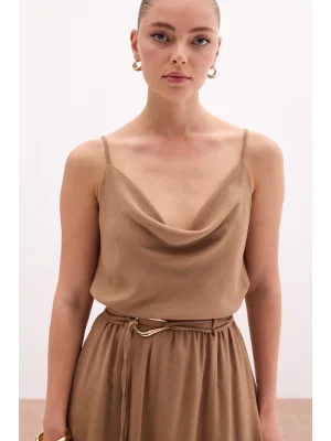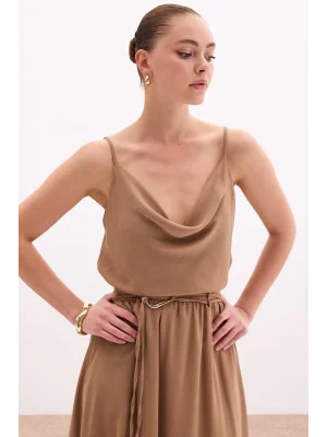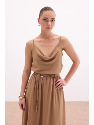 Degaje Yaka Dökümlü Bluz - Vizon