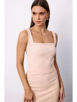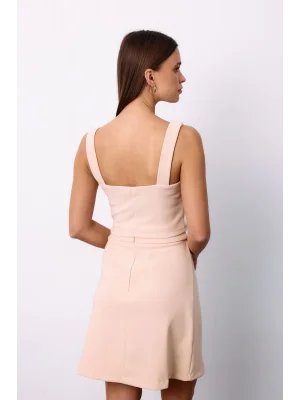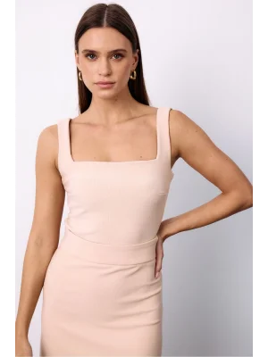 Kare Yaka Crop Bluz - Bej