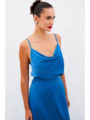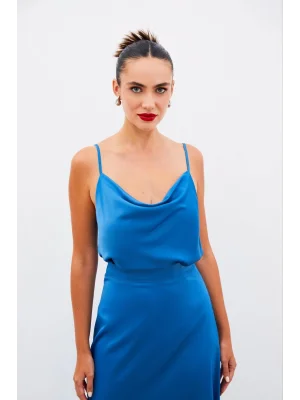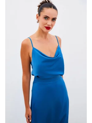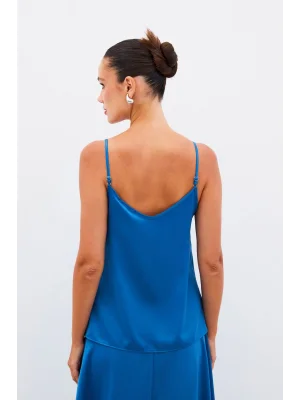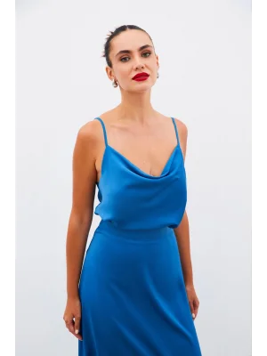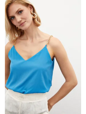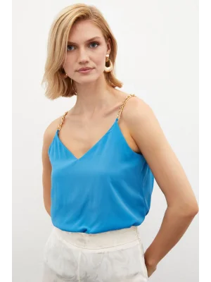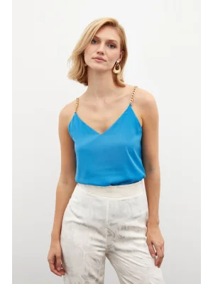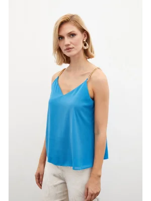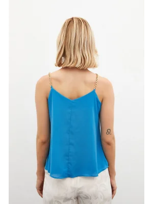 Zincir Askılı Salaş Bluz Mavi