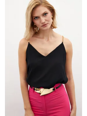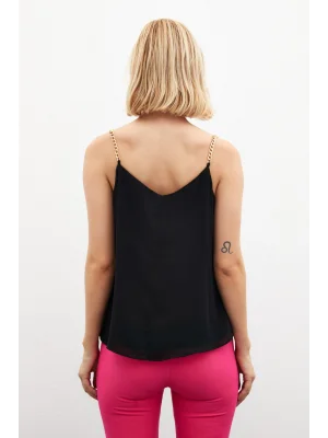 Zincir Askılı Salaş Bluz - Siyah