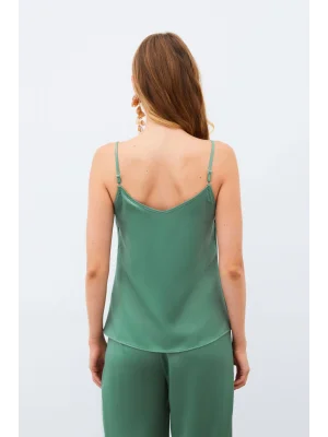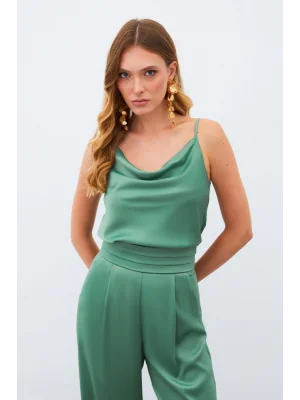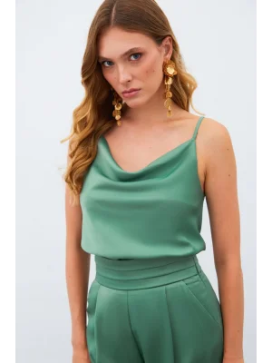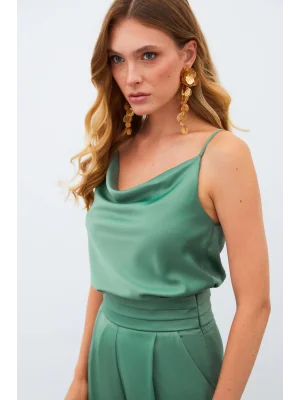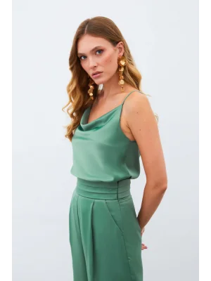 Degaje Yaka Saten Bluz - HAKİ