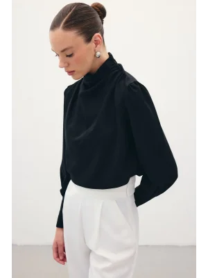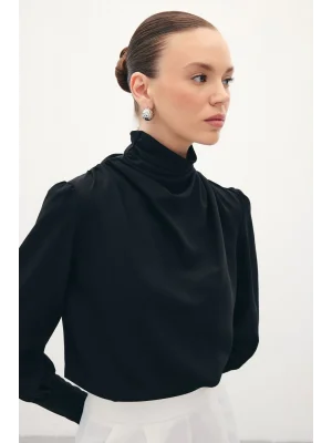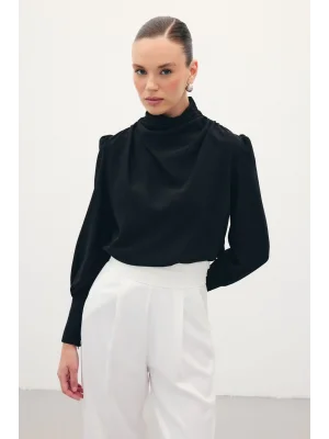 Drape Detaylı Bluz - Siyah