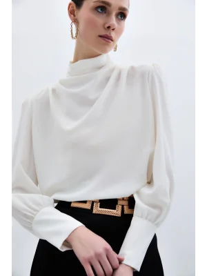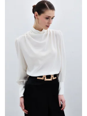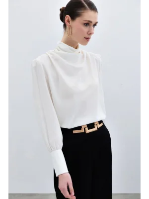 Drape Detaylı Bluz - Ekru