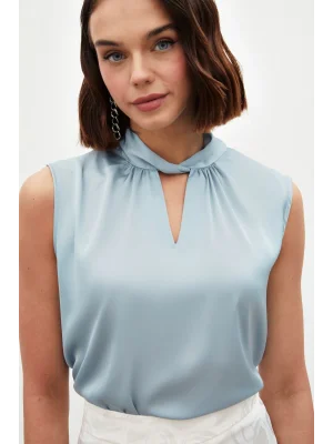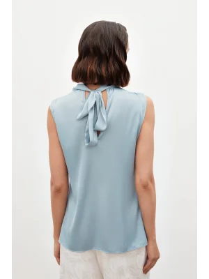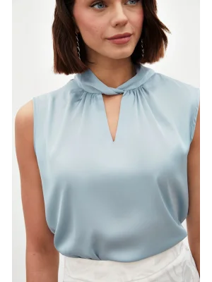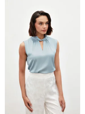 Yaka Detaylı Saten Bluz - BEBE MAVİ