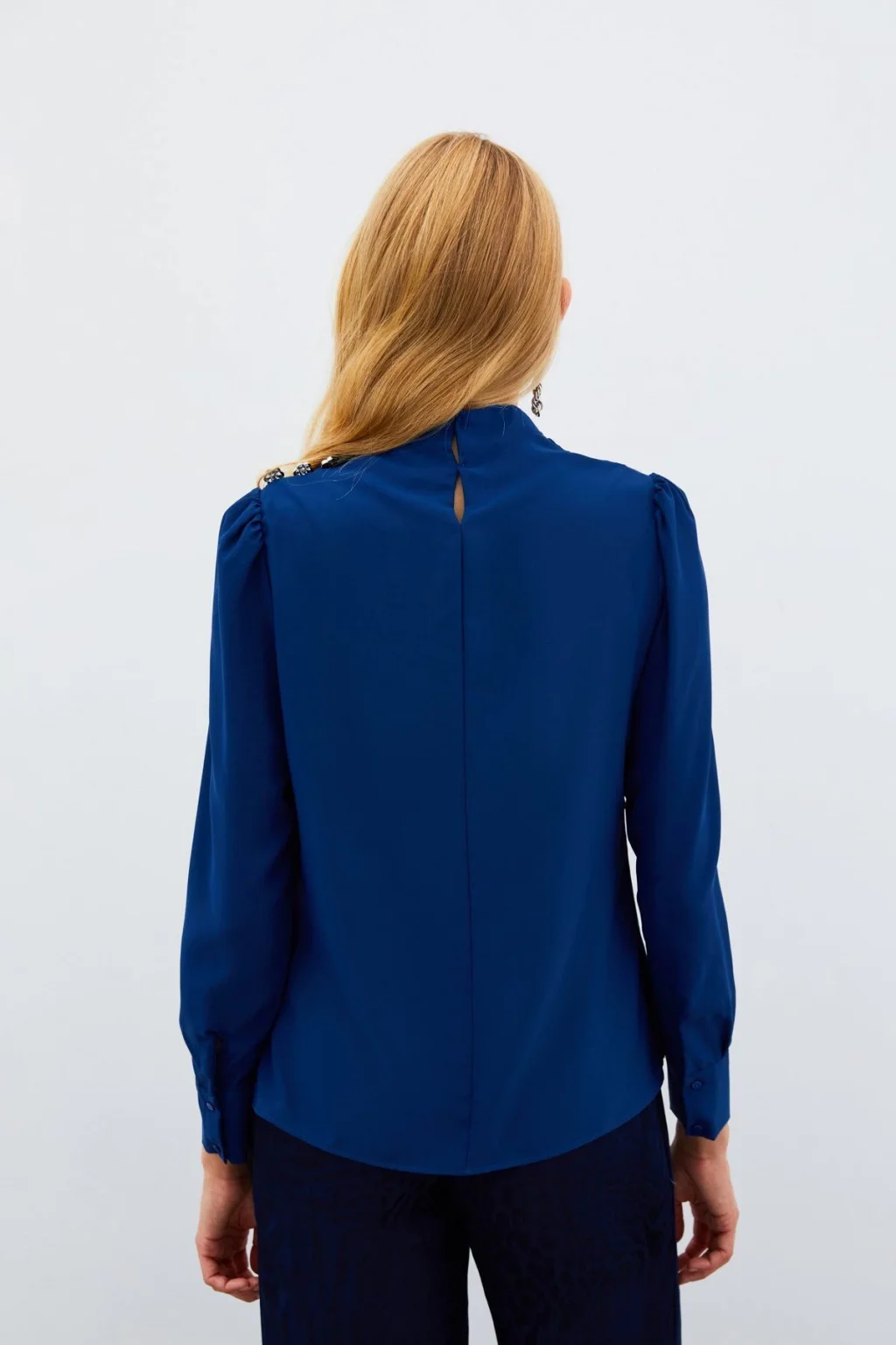 Düğmeleri Taş Detaylı Bluz - LACİVERT