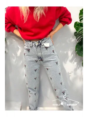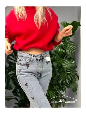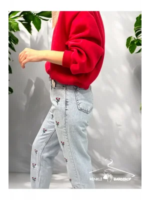 R&G NAKIŞ DETAYLI DENİM KOT PANTALON