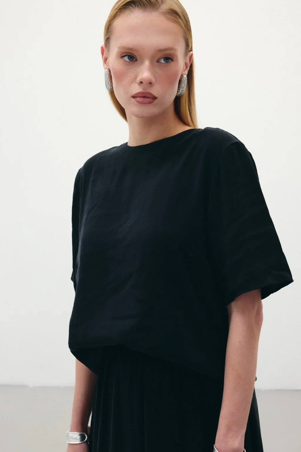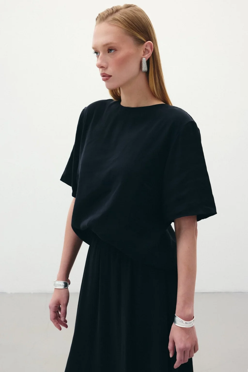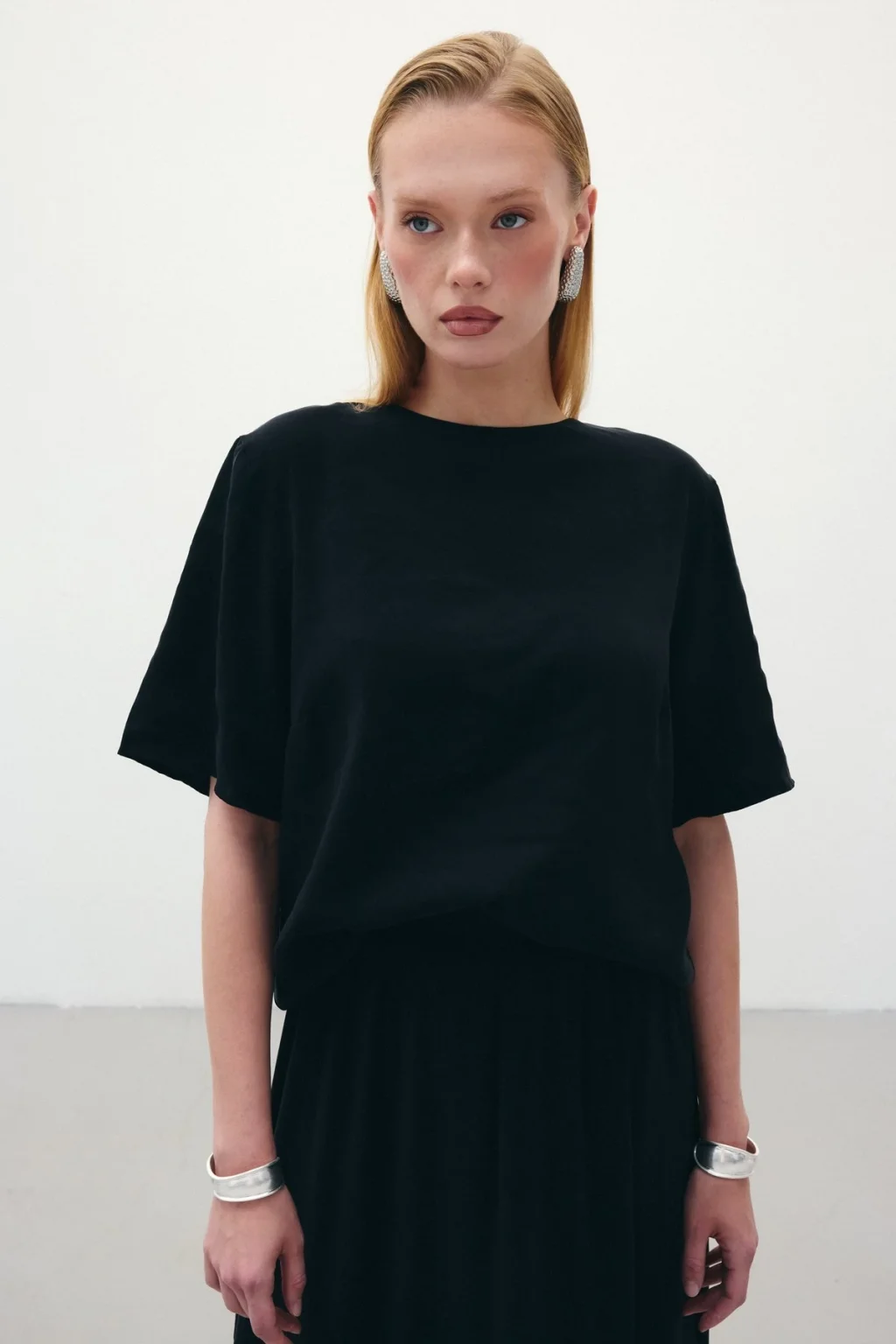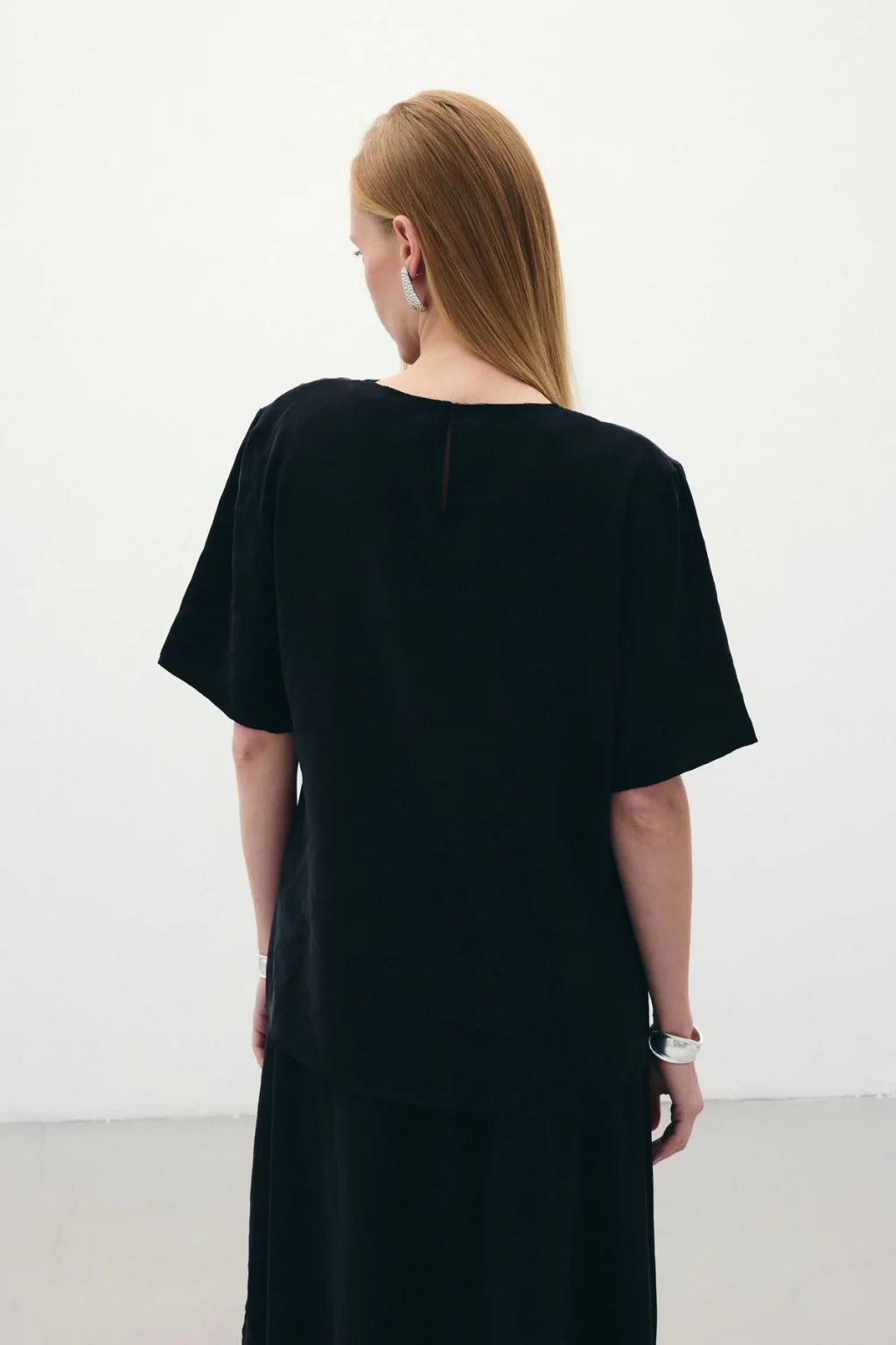 Kısa Kollu Salaş Bluz - Siyah