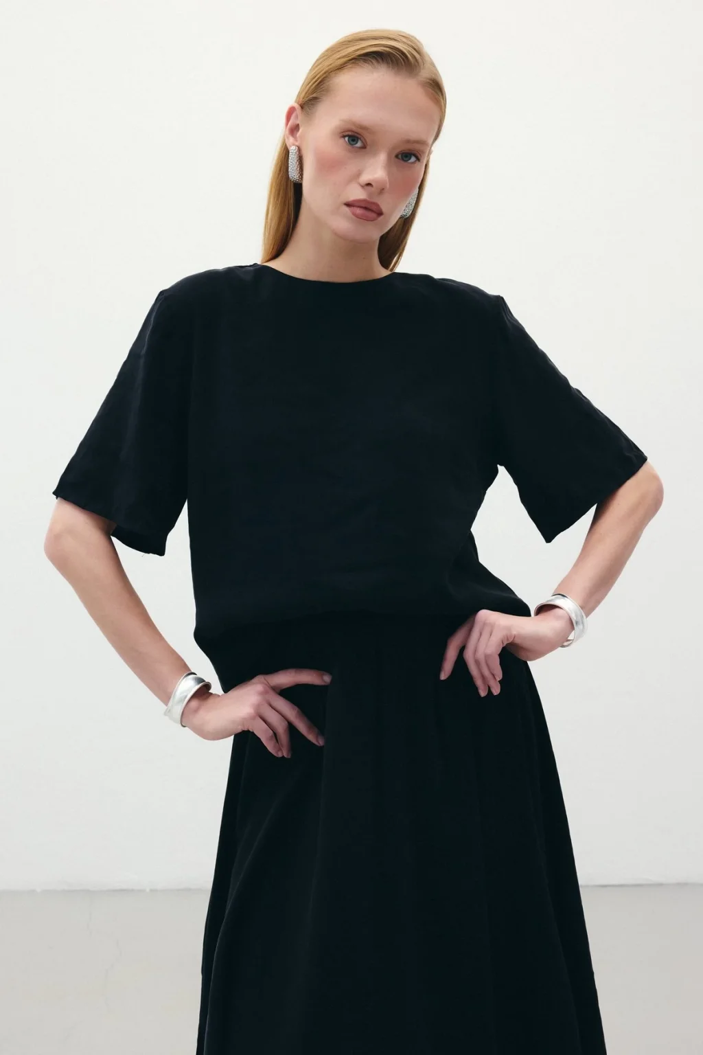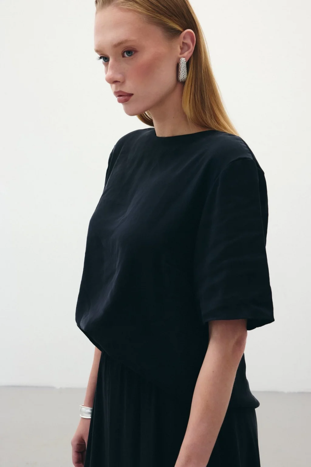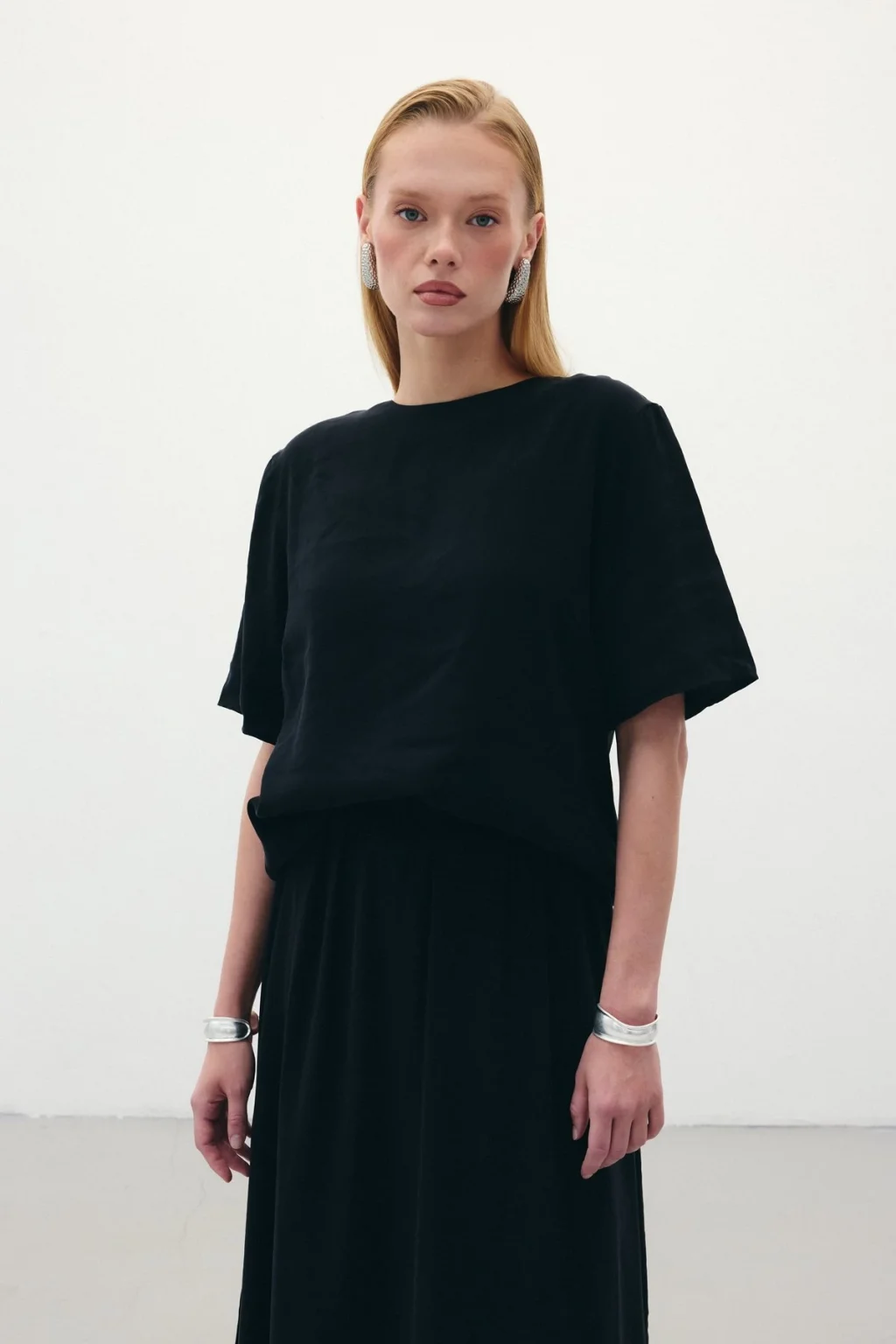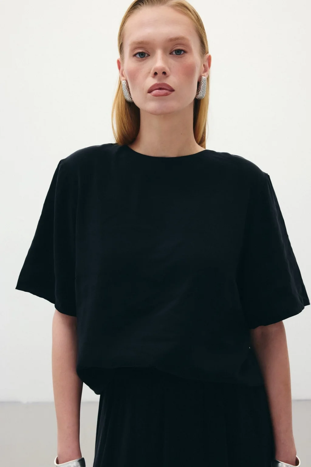 Kısa Kollu Salaş Bluz - Siyah