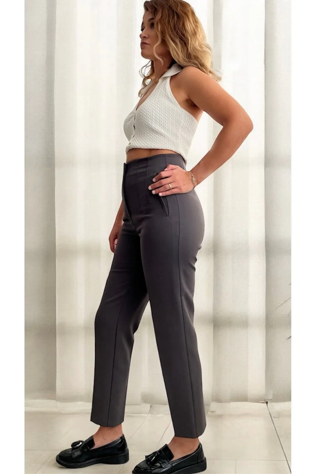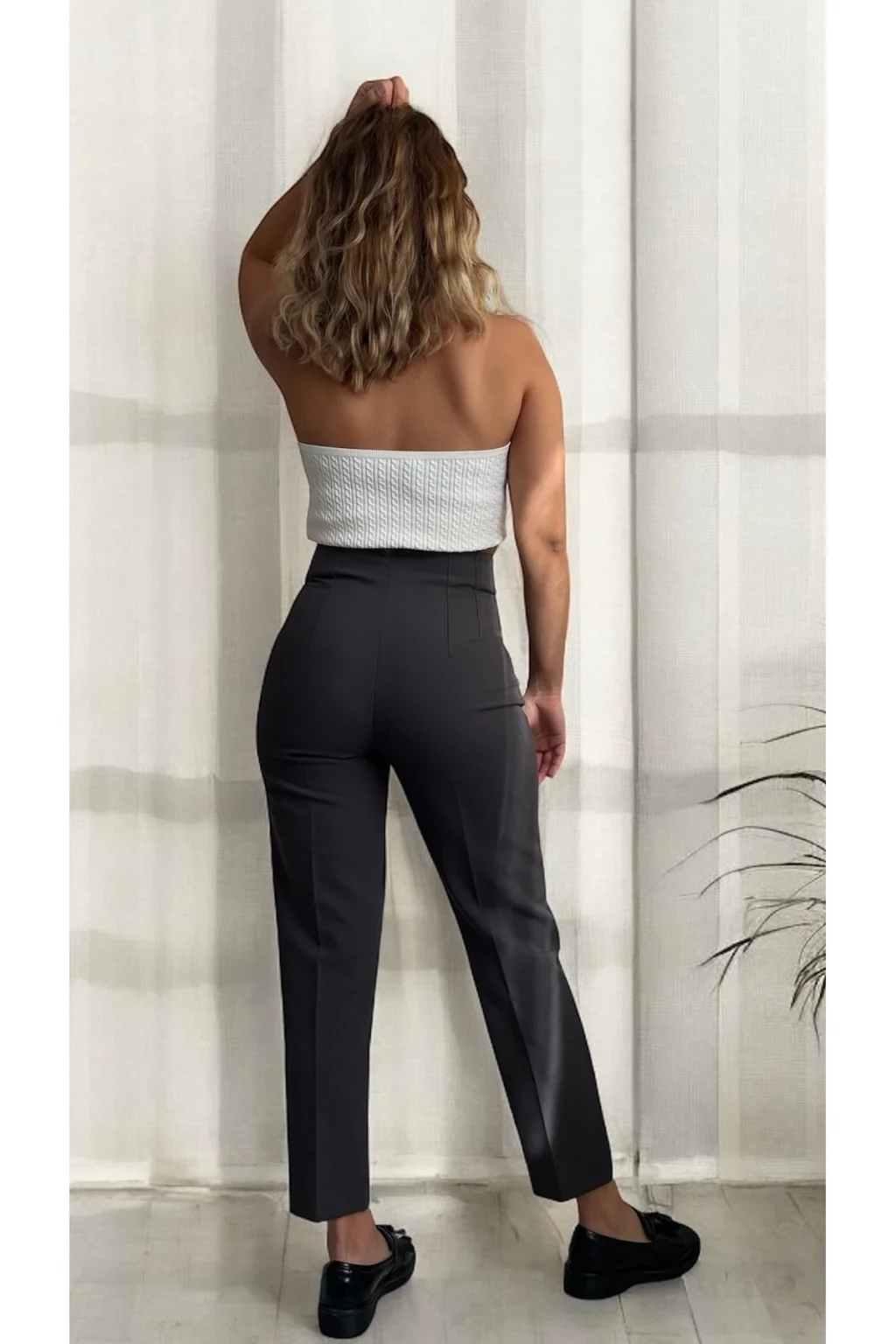 Koyu Gri Önü Filatolu Kumaş Pantolon