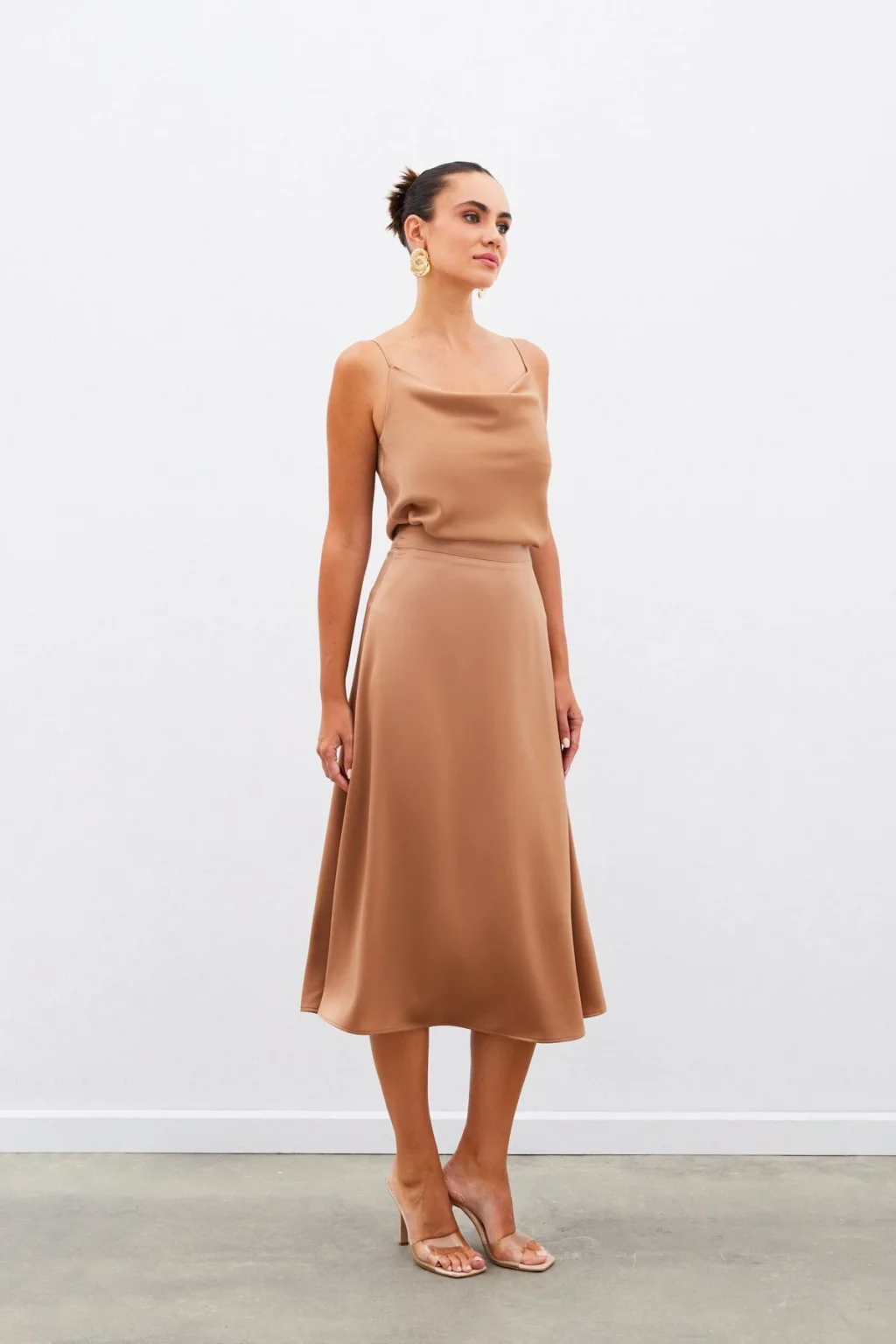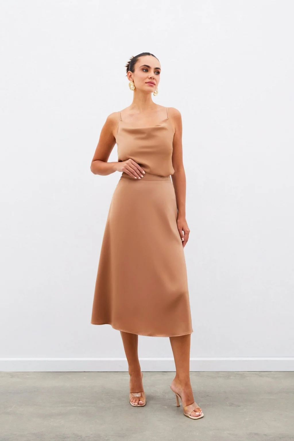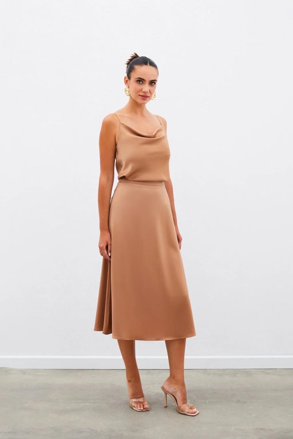 Midi Boy Saten Etek - Camel