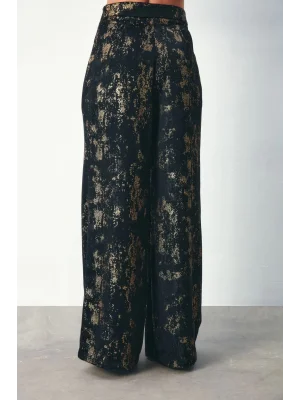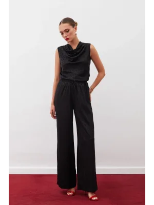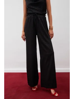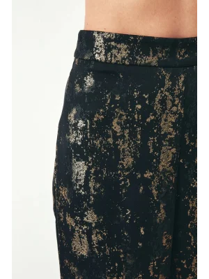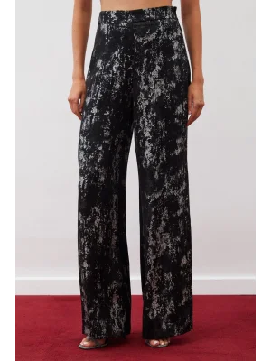 Parlak Desenli Salaş Pantolon - SİYAH