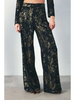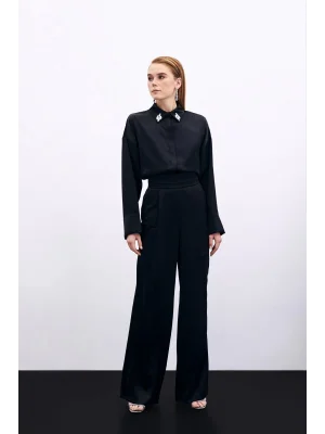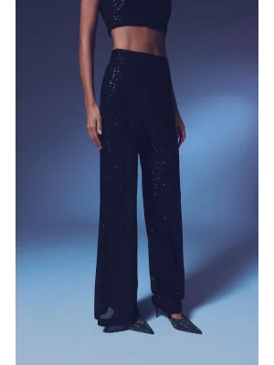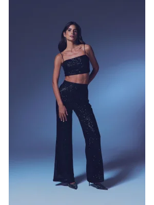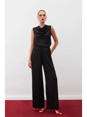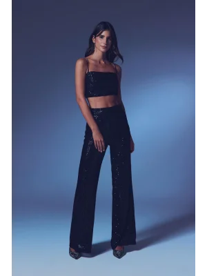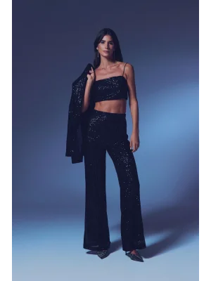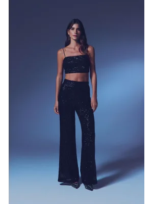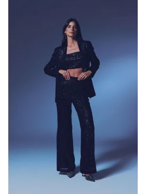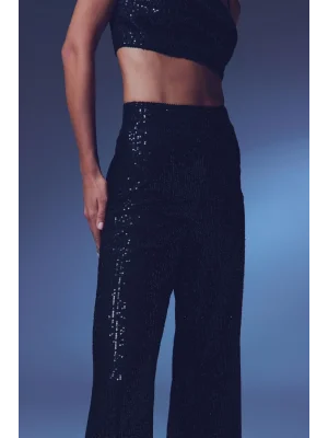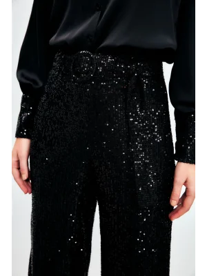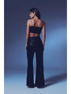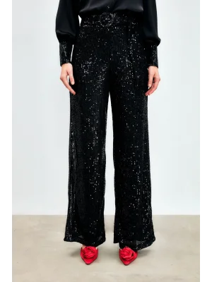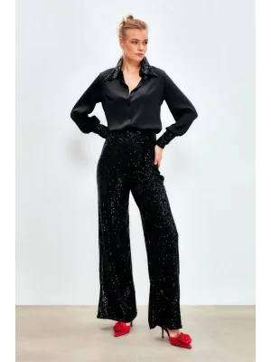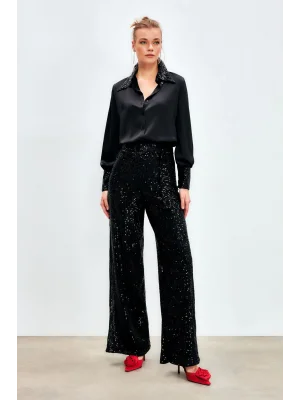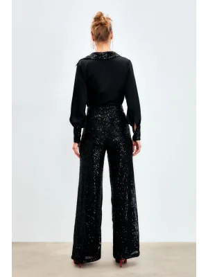 Payetli Salaş Pantolon - Siyah