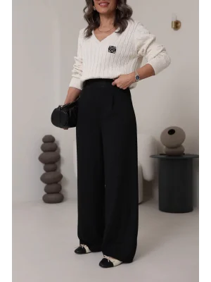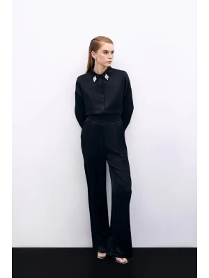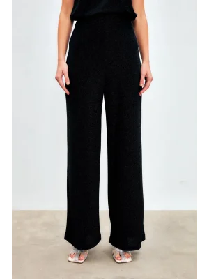 Simli Bol Paça Pantolon - SİYAH
