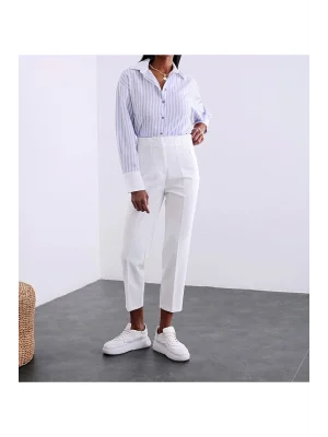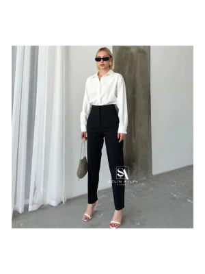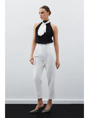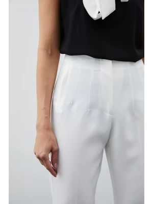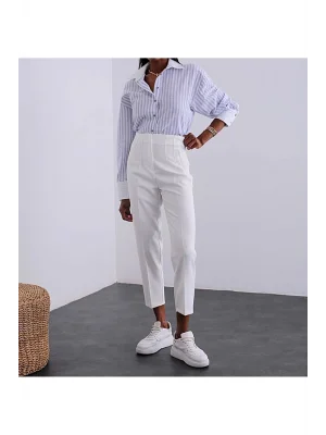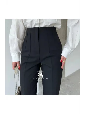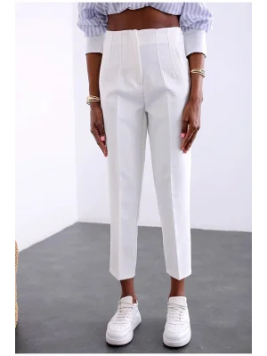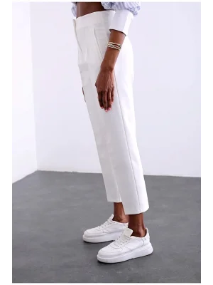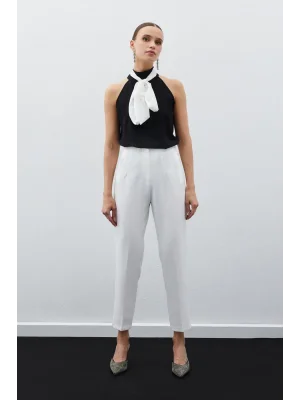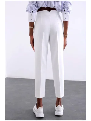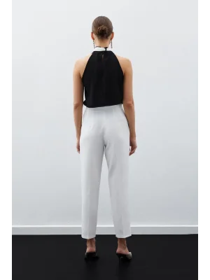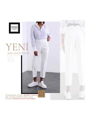 Kadın Beyaz Önü Flatolu Yüksek Bel Zr Model Kumaş Pantolon