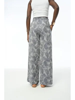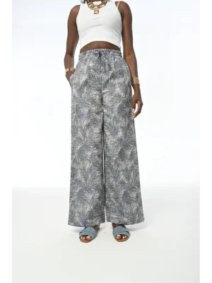 KADIN DESENLİ LACİVERT BELİ LASTİKLİ BOL PAÇA PANTOLON
